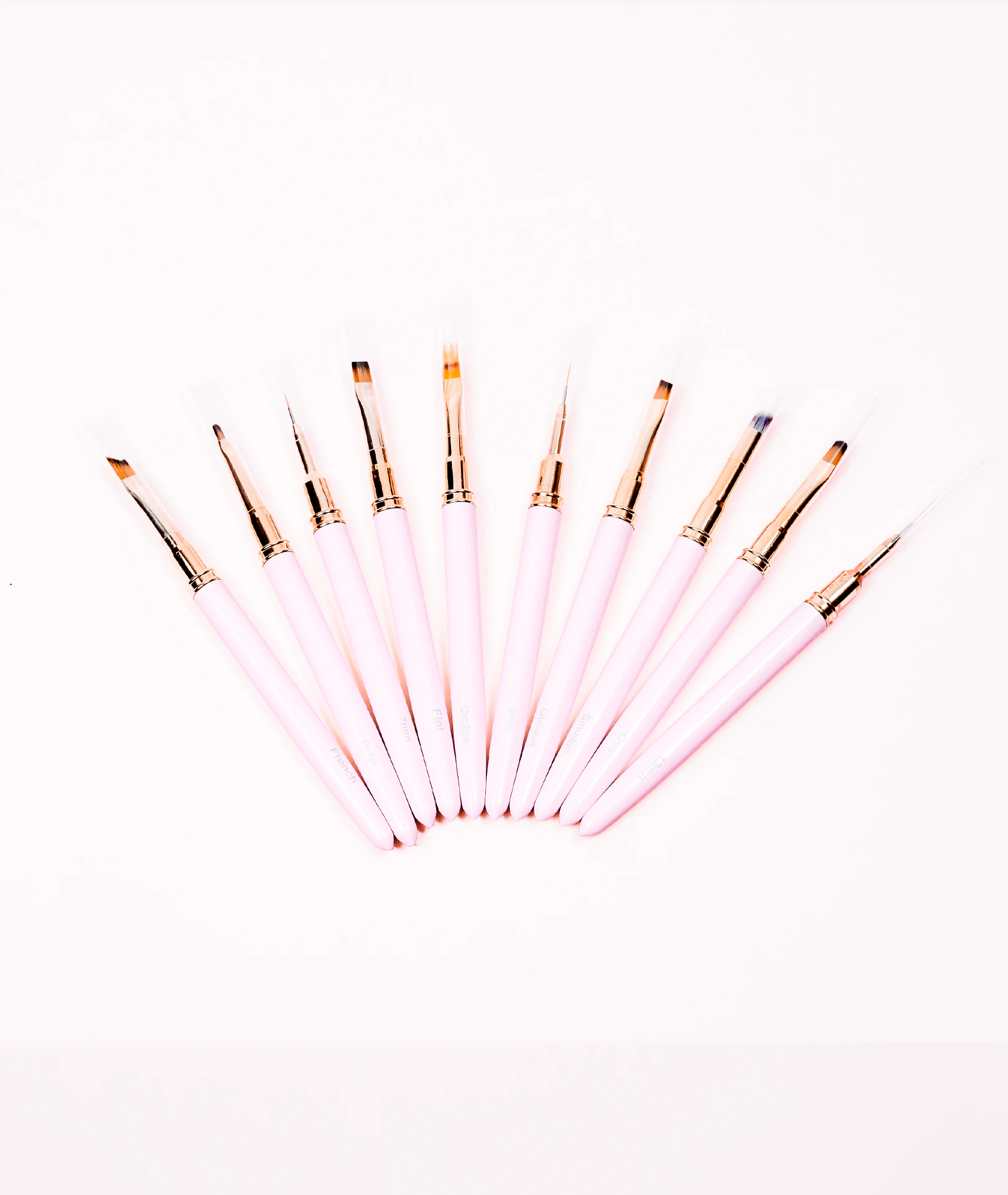 Acest set de pensule nail art cu mâner roz este creat pentru tehnicienii care își doresc control maxim și versatilitate în realizarea designurilor pe unghii. Pensulele au forme diferite – drepte, oblice, subțiri și foarte subțiri – fiind perfecte pentru linii fine, contururi, degradeuri ombré, detalii artistice și aplicări precise de gel, vopsea sau pigmenți.