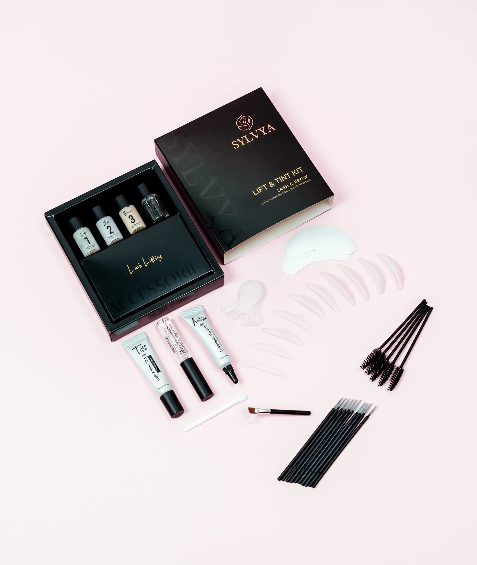 SYLVYA Lift & Tint Kit este un set profesional complet, conceput pentru lash & brow artiști care doresc rezultate consistente, control maxim și eficiență în salon. Kitul conține toate produsele și accesoriile necesare pentru proceduri de laminare și vopsire, atât pentru gene, cât și pentru sprâncene.
